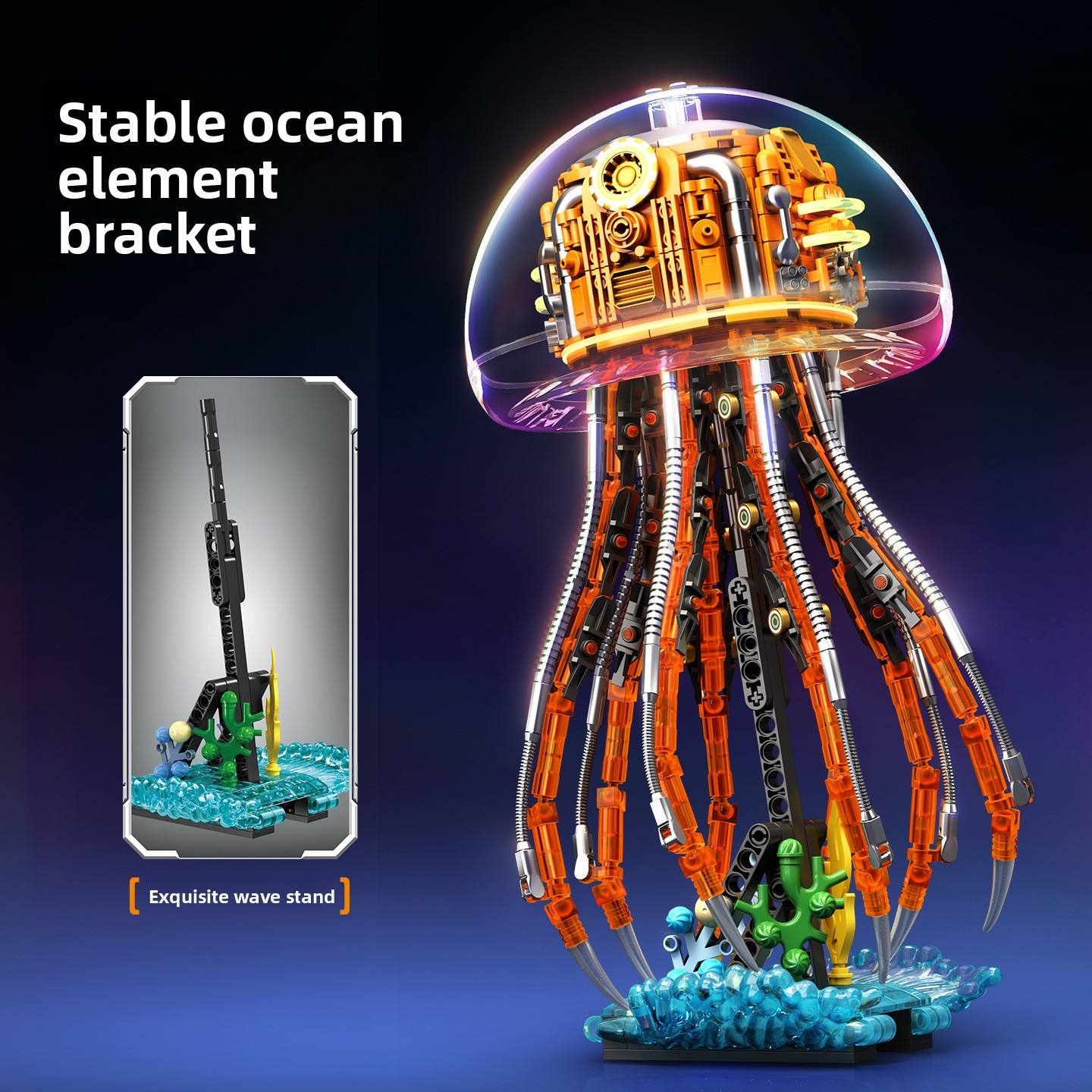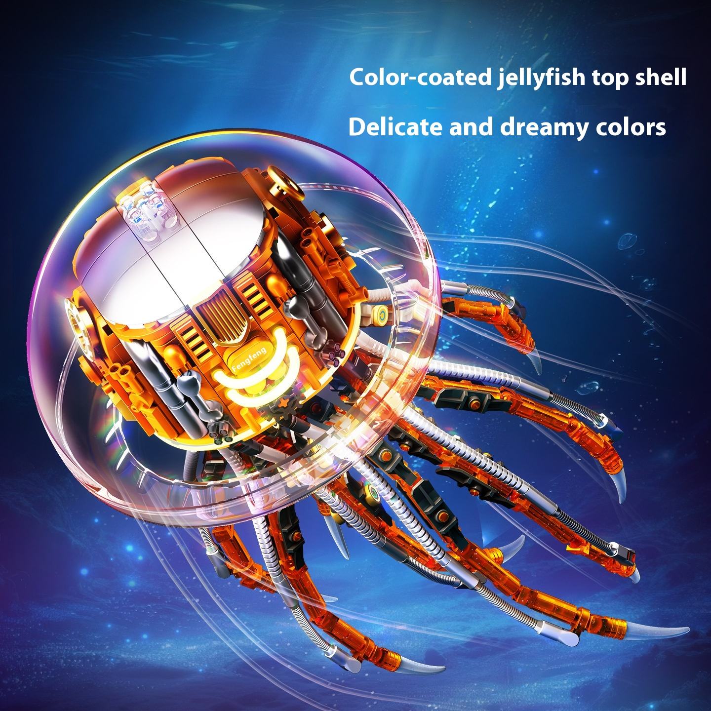 • DETAILED CONSTRUCTION: Features 726 high-quality building pieces that assemble into an intricate jellyfish design with articulated tentacles, mechanical details, and a transparent colour-coated dome shell in delicate dreamy colours