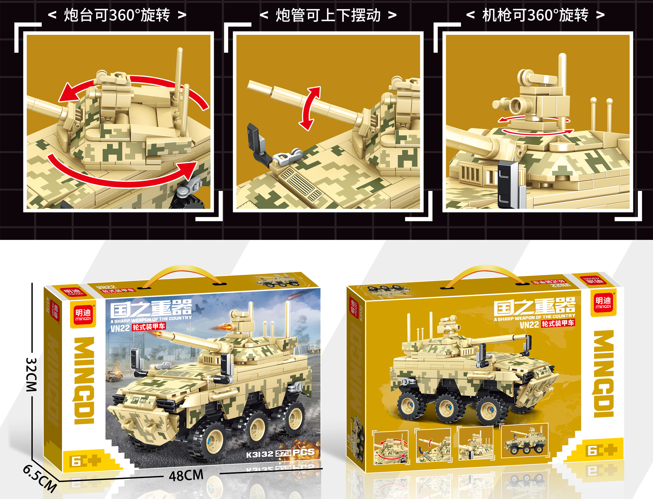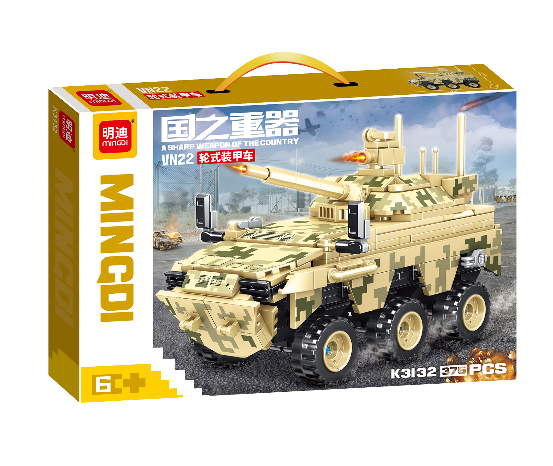 • DETAILED MILITARY MODEL: Build a realistic VN22 wheeled armoured vehicle with authentic desert camouflage design featuring 375 high-quality building blocks for an engaging construction experience