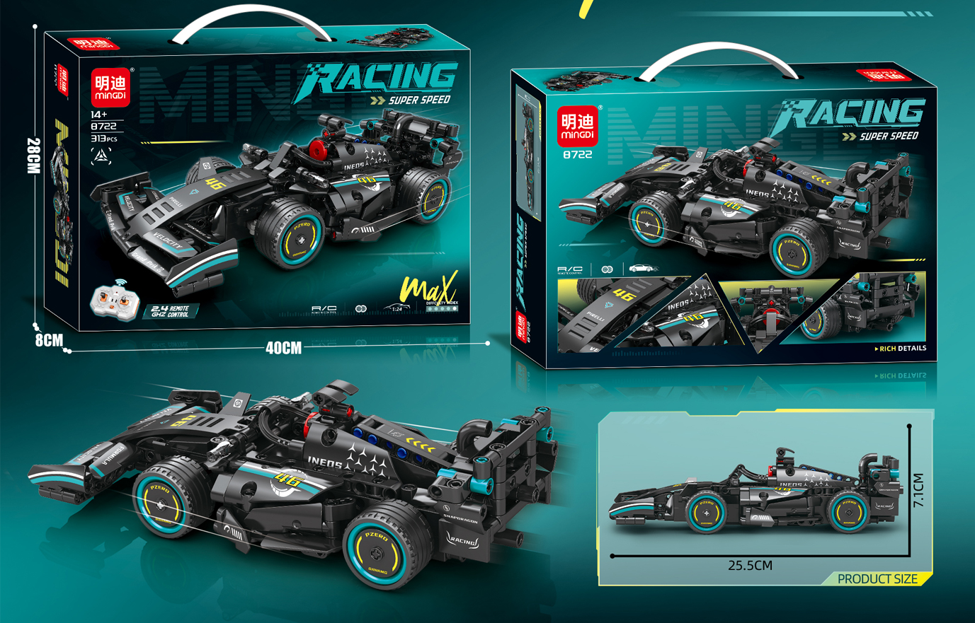 - REMOTE CONTROL BUILDING SET: This 315-piece building block set lets you construct a detailed 1:24 scale F1 racing car replica with 2.4 GHz remote control functionality for an immersive racing experience